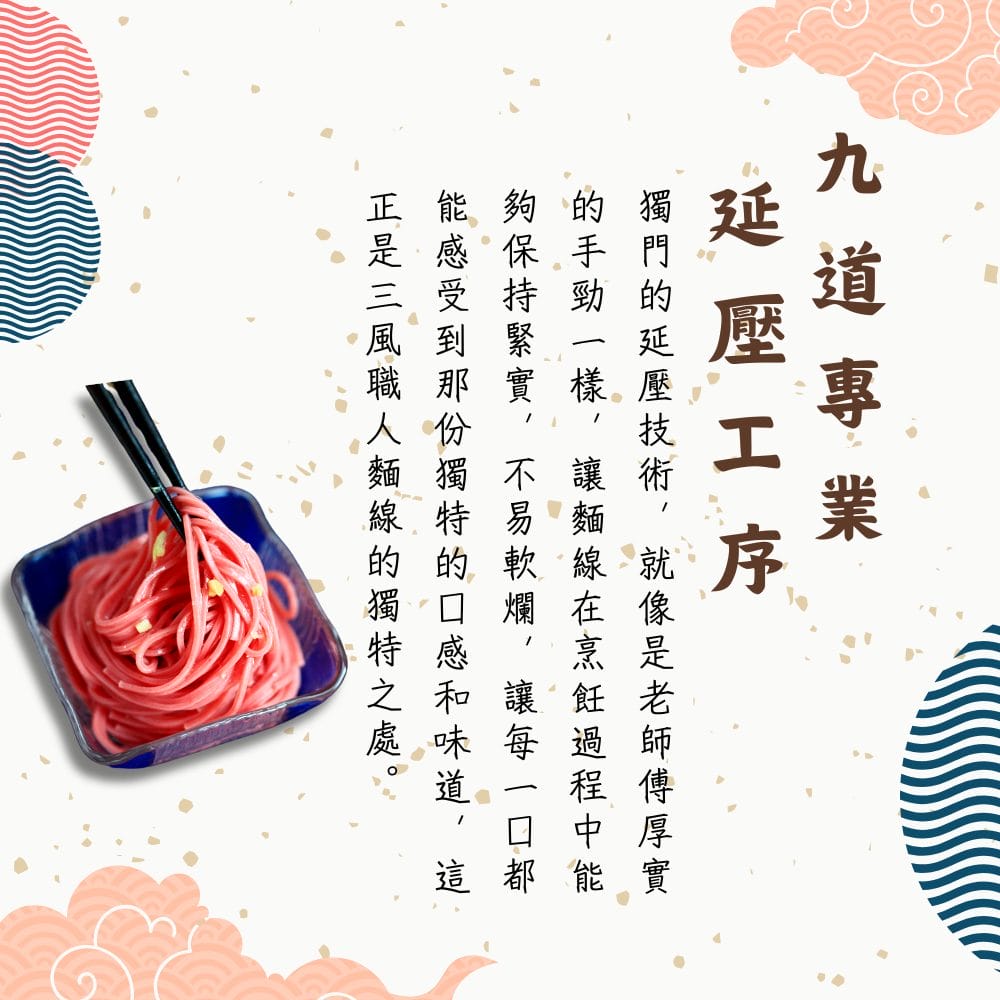 (2)麵體顏色來自天然原料,如有褪色或斑點(麵粉攪拌不均),均屬自然現象,不影響產品品質,敬請安心使用
